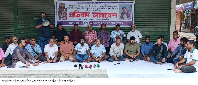 জামালপুর জেলা প্রেসক্লাবের সভাপতি এসএটিভির সাংবাদিক ফজলে এলাহী মাকামের সভাপতিত্বে প্রবীণ সাংবাদিক উৎপল কান্তি ধর, আজকের জামালপুরের সম্পাদক এম এ জলিল, সচেতন নাগরিক কমিটির সাবেক সভাপতি অজয় কুমার পাল, ভাষা ও স্বাধীনতাসংগ্রামী মতি মিয়া ফাউন্ডেশনের সাধারণ সম্পাদক একেএম আশরাফুজ্জামান স্বাধীন, আমার দেশের সাংবাদিক ইউসুফ আলী, দিনকালের মুকুল রানা, নিউ নেশনের শাহ জামাল, ইত্তেফাকের শাহীন আল আমীন, বাংলাদেশ প্রতিদিন ও ডিবিসি নিউজের শুভ্র মেহেদী, সমকালের সোলায়মান হোসেন হরেক, যায়যায়দিনের লিয়াকত হোসাইন লায়ন, মাইটিভির শামীম আলম, এশিয়ান টিভির মোস্তাক আহমেদ মনির, এখন টিভির জুয়ের রানা, এনটিভি ও খবরের কাগজের আসমাউল আসিফ, বাংলা টিভির ফজলুল করিম কাওছার, একুশে টিভির খন্দকার রাজু আহমেদ, সাপ্তাহিক মুক্তকালের সম্পাদক মোহাম্মদ আলীসহ অন্যান্যরা বক্তব্য রাখেন। এ সময় বক্তারা বলেন, সরকার কোন সাংবাদিক হত্যার দৃষ্টান্তমূলক বিচার না করায় সাংবাদিক হত্যা ও নির্যাতনের ঘটনা বেড়েই চলেছে। হত্যাকান্ডের সাথে জড়িত কিছু আসামীকে গ্রেফতার করা হলেও পরে তারা বিভিন্ন আইনি ফাকফোকর দিয়ে জামিন পেয়ে যাচ্ছে। এতে করে সন্ত্রাসীরা আরো বেশি ভয়ংকর হয়ে উঠছে, একের পর এক সাংবাদিক হত্যা ও নির্যাতনের ঘটনা ঘটছে। সাংবাদিক আসাদুজ্জামান তুহিন হত্যাসহ সকল সাংবাদিক হত্যার বিচার নিশ্চিত করতে ও সাংবাদিক সুরক্ষা আইন প্রণয়ন করার জন্য সরকারের কাছে দাবী জানান বক্তারা।